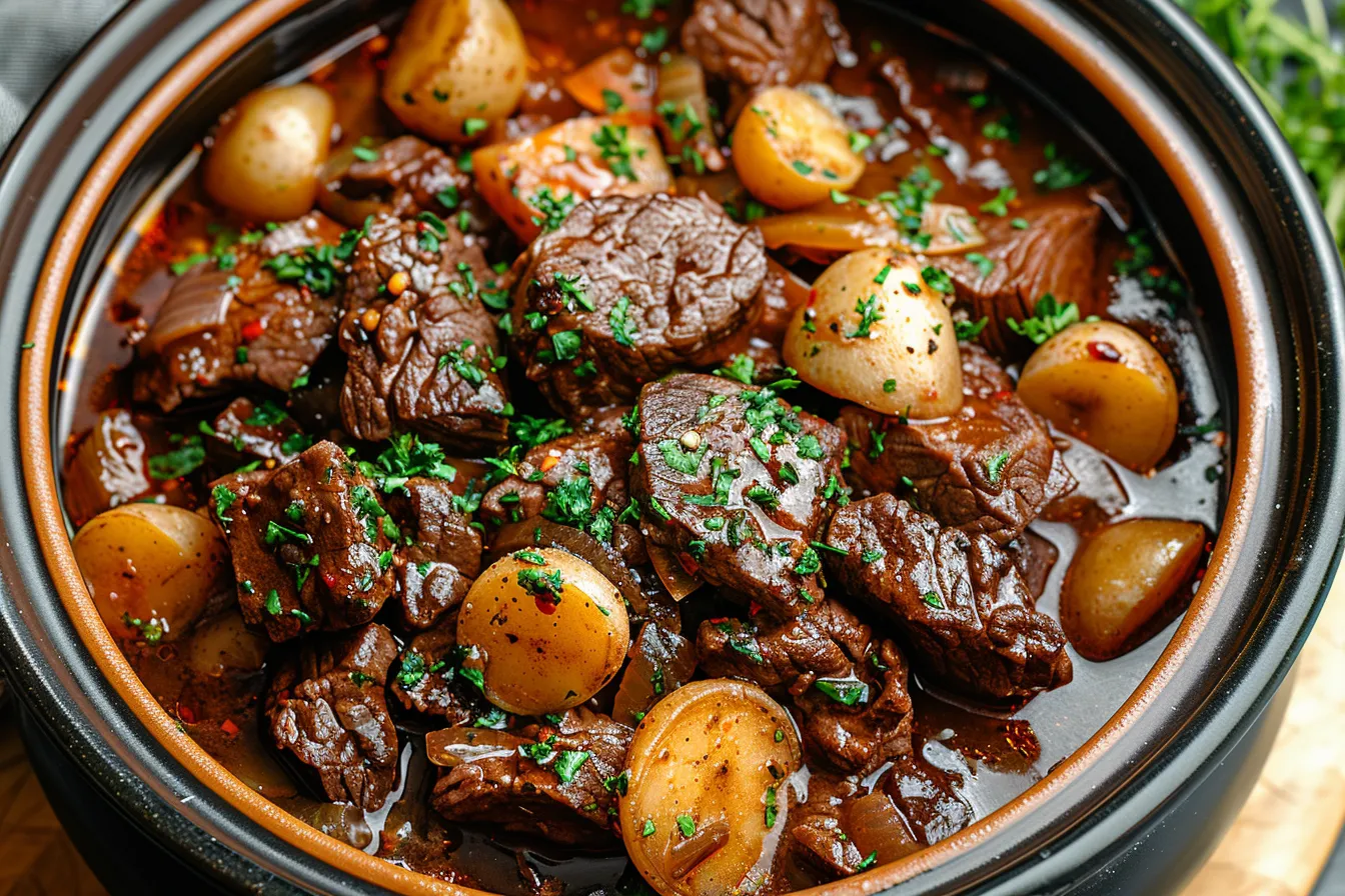 • Thicken the Sauce: If the sauce is too thin after cooking, you can thicken it by making a slurry of cornstarch and water (1 tablespoon of cornstarch mixed with 2 tablespoons of cold water). Stir the slurry into the stew during the last 30 minutes of cooking, or you can remove some of the liquid and reduce it on the stovetop.