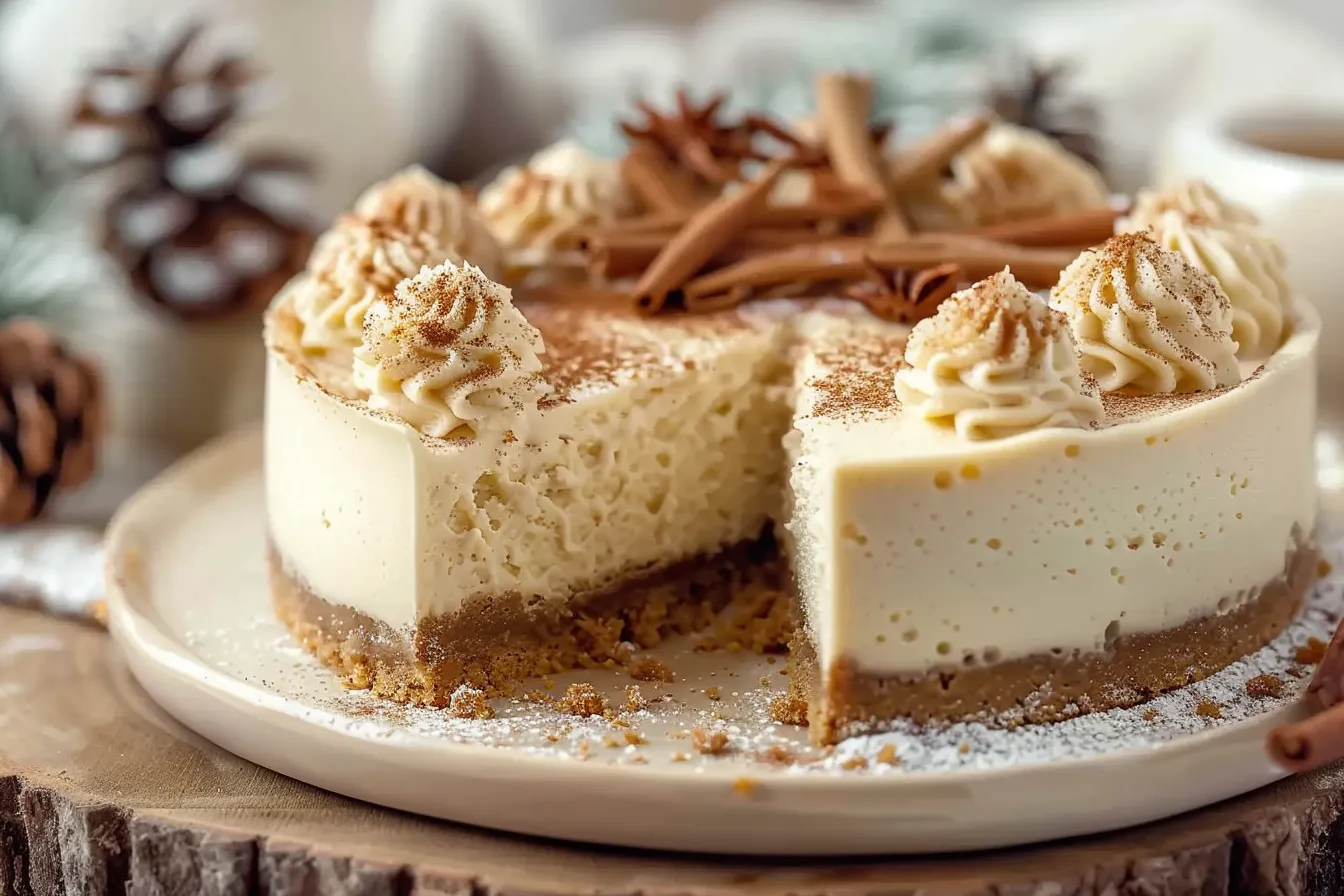Delight in creamy Eggnog Cheesecake Bliss a festive treat that captures holiday magic in every slice Perfect for your seasonal cravings Try it today