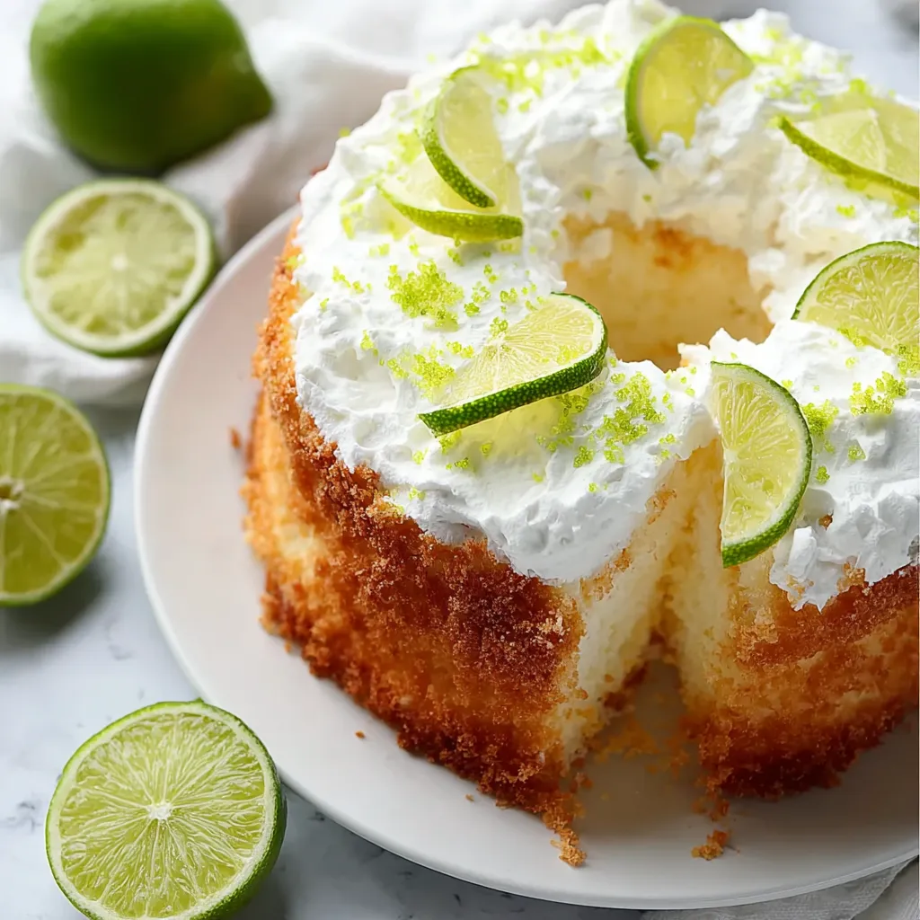 Heavenly Key Lime Angel Food Cake: Light, zesty, and easy to make! Bake this perfect dessert today.