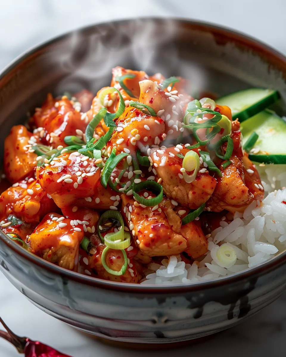 Craving something spicy, savory, and utterly satisfying? Look no further than this Korean Gochujang Chicken Bowl! Tender, juicy chicken with the fiery kick of gochujang, nestled in a bed of fluffy rice and vibrant veggies. Restaurant-worthy meal in under 30 minutes!